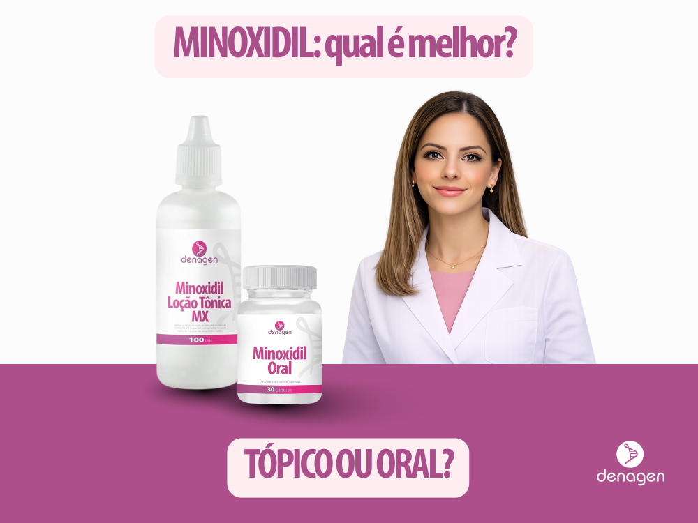 Minoxidil oral ou tópico: qual a melhor escolha para tratar a queda de cabelo?. Saiba tudo sobre esse assunto clicando no botão abaixo para ler o artigo completo.